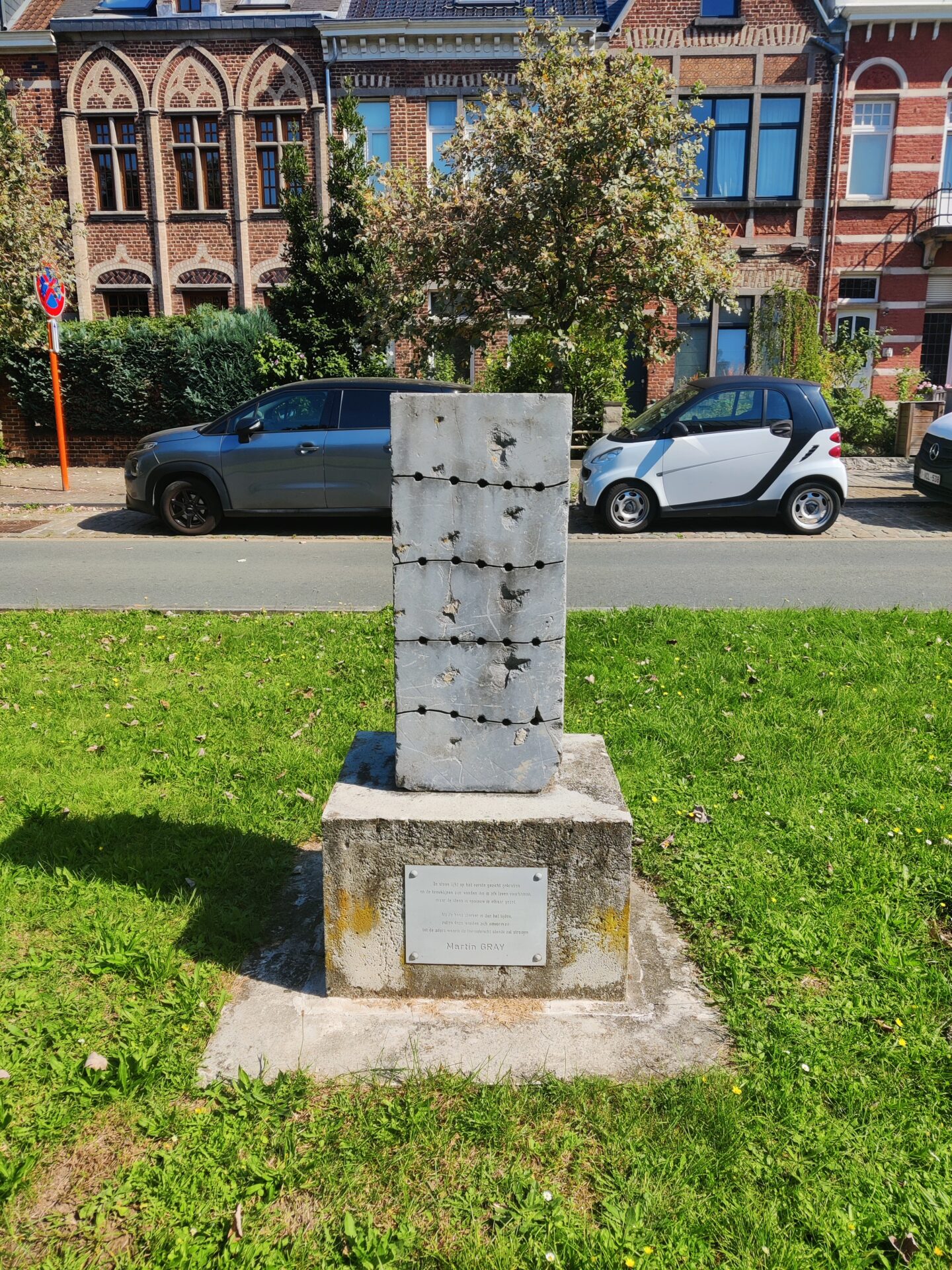 Schrijver Martin Gray, die ook beeldhouwer is, heeft de gemeente Ukkel een aangrijpend kunstwerk geschonken: vijf gebarsten blokken steen die de scheuren in het menselijk leven symboliseren. In een artikel over de inhuldiging van het werk legt Gray uit waarom hij steen als materiaal gekozen heeft: “Ik hou van steen, een symbool van verzet en eeuwigheid. Wanneer ik in mijn boeken het getto van Warschau beschreef, vergeleek ik ons leven met de weerstand van steen”. De barsten, bijna als littekens, doen ook denken aan het prikkeldraad rond de concentratiekampen, een visuele knipoog naar de diepe wonden van de geschiedenis.