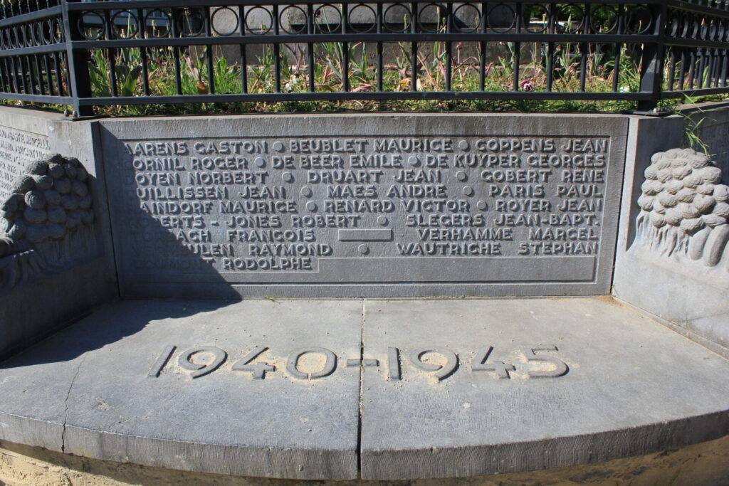 In 1948 werden er banken in blauwe steen toegevoegd om de 193 Ukkelse slachtoffers van de Tweede Wereldoorlog te herdenken. Deze banken staan rond het monument in een achthoekige omheining en zijn fijn versierd met plantaardige en dierlijke motieven. Het opschrift “1940-1945” staat op de bank tegenover de trap naar het Wolvendaelpark, waardoor de twee wereldoorlogen op eenzelfde stille plek herdacht worden.